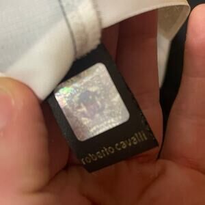 Eye-catching Roberto Cavalli sheath dress featuring a mesmerizing blue, white, and black geometric print. This sophisticated dress has a flattering V-neckline and 3/4 length sleeves, making it perfect for a variety of occasions. Its body-hugging silhouette effortlessly creates a chic and polished look. Ideal for a business meeting, a special date night, or a stylish cocktail party.