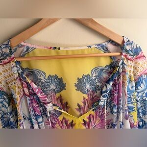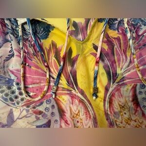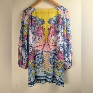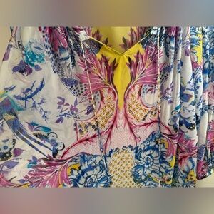 Roberto Cavalli EUC Silk Printed Tunic Sheer Top Birds Butterfly Size 42 Italy