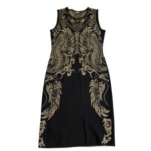 Roberto Cavalli Gold Black Knit Sleeveless Dress size 40 Wool Blend