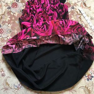 Very unique Roberto Cavalli print. A-line with pleats. Generous side zip and hook-n-eye closure for the neck.