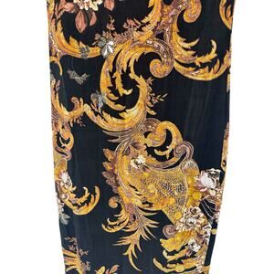 Roberto Cavalli Just Cavalli Black Gold Floral Stretch Scoop Neck Dress Size 4