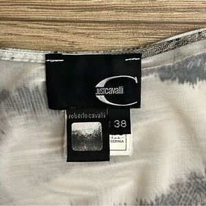 Excellent (almost) vintage condition Just Cavalli Animal Print Wrap Dress in Black/White/Gray, Italian size 38 - US size 6 or small.