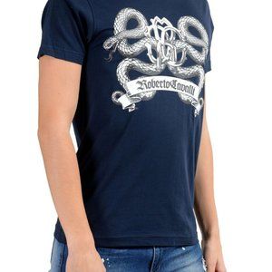 ROBERTO CAVALLI MEN'S NAVY BLUE GRAPHIC CREWNECK T-SHIRT SIZE S M L XL