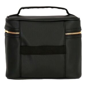 • Printed Logo Cosmetic Case in black saffiano PU and gold-tone hardware with printed RC logo