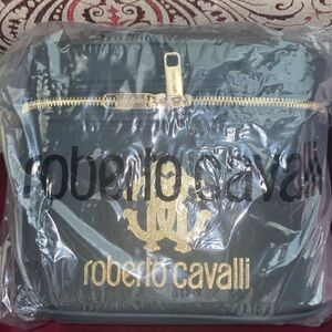 Roberto Cavalli New Black vanity bag Printed Logo Cosmetic Case good for travel