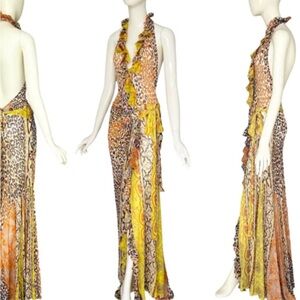 Roberto Cavalli rare Spring/Summer 2006 Vintage Signed Printed Silk Halter Dress