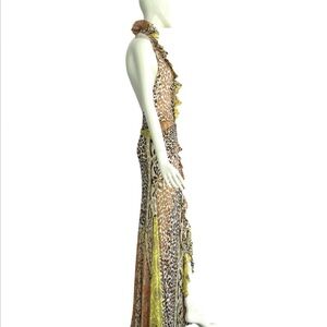 Roberto Cavalli Rare Yellow and Brown Backless Dress
