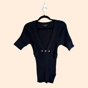 Roberto Cavalli Black Rib Knit Crystal Top