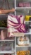 Elegant skirt with vibrant pink and cream swirl pattern in tiered layers.