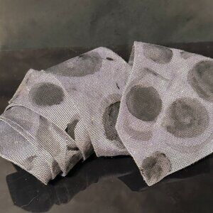 Thank you for checking out this upcycled Roberto Cavalli silk tie — hand painted in layered gray and black abstract strokes with subtle movement and contrast. Made using high-quality permanent fabric paints on a luxury silk base.