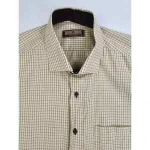 Roberto Cavalli Size XL Mens Classic Beige Brown Check Short Sleeve Pocket Shirt