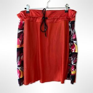 Incredible Roberto Cavalli sport, tangerine, plissé, pleaded mini skirt. Sporty drawstring waist with printed side panels and incredible patch on the back