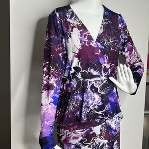 This is a beautiful Roberto Cavalli Sz L Midi Peplum Long Sleeve Poly Lycra Dress. Sonhas lots of stretch. Lined. Excellent condition. No stains. No tears. Measurements as follows: