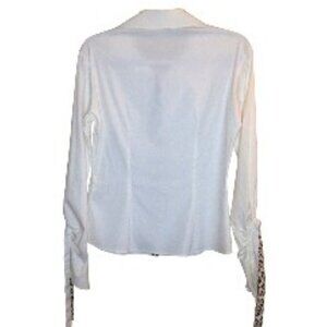 Roberto Cavalli Vintage 2005 Blouse Top Button Up Animal Print Trim IT 44 (US 8)