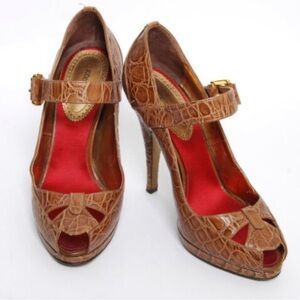 Roberto Cavalli Vintage Crocodile Embossed Leather Peep Toe Shoes