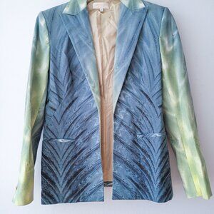 Roberto Cavalli Vintage SS2001 Collection Teal Gold Cupro Denim Blazer RARE