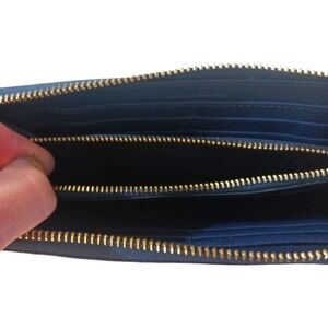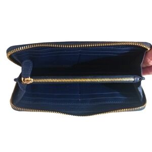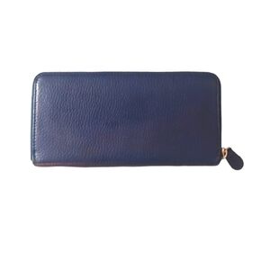Roberto Cavalli Wallet Navy Blue Pebbled Leather Accordian Wallet