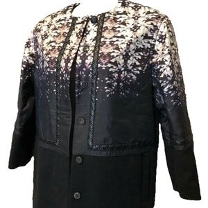 A sumptuous 100% lana virgin wool brings a luxurious feel to this chic coat. It’s beautifully detailed with leather trim and a gorgeous print.