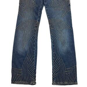 Roberto Cavalli Floral Seam Design Italian Straight Jeans Large