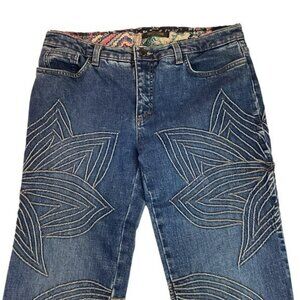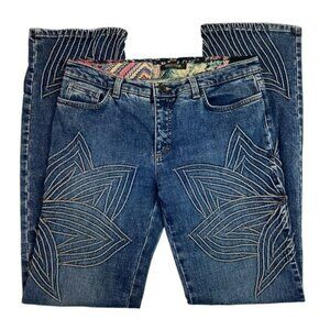 Roberto Cavalli Womens Large Vintage Embroidered Floral Jeans Wide Straight Leg