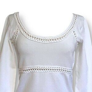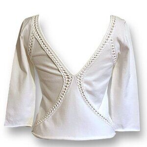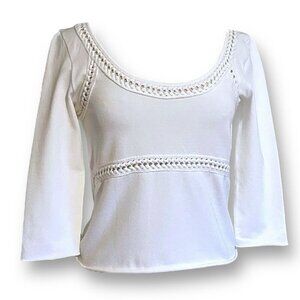 Roberto Cavalli Womens Top Sz Medium White Knit Low Back Cropped Blouse Italy