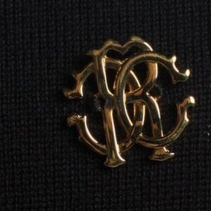 Roberto Cavalli Wool Colorblock Pattern Black and Gold Sequin Cardigan size L