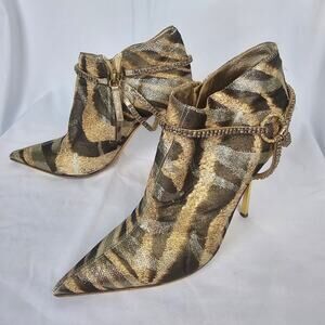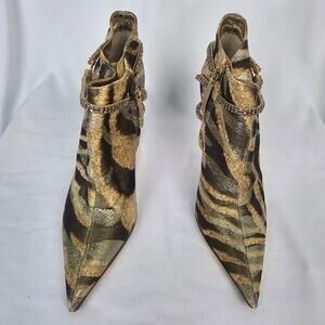 Roberto Cavalli Zebra Metallic Brocade Heels Gold Sole Pointed Toe EU 39 Made in Italy