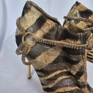 Roberto Cavalli Zebra Metallic Brocade Heels Gold Sole Pointed Toe EU 39 Italy