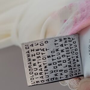 White, pink, gold glitter, yellow floral print with Roberto Cavalli signature logo throughout