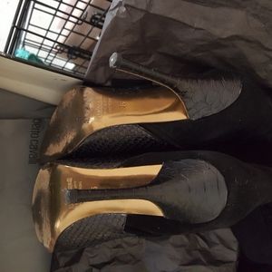 Roberto Cavalli snakeskin/suede pointy toe boots. Side full zipper. Sz 36. Fits true to size. Worn just handful of times. Very comfy and in very good condition. Signs of wear are just on soles. COMES WITH ORIGINAL BOX AND TISSUE PAPER.