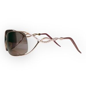 Roberto Cavalli sunglasses. Features a gold frame with intricate design. Stylish and chic for any occasion.