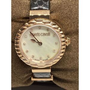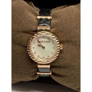 Roberto Cavalli RV2L023L0056 Women's Black Leather Quartz Watch MSRP TK25