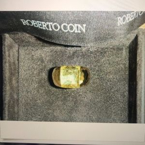 Authentic Roberto Coin Martellato 18k Yellow Gold, Size 8. Hammered texture with gorgeous domed citrine. Total weight is approximately 18.64g. Measures approximately 0.72 inch (18.26mm) at top and tapers down to approx. 0.36 inch (9.08mm) Quality Italian brand, beautiful craftmanship - Super high quality and stunning to wear hallmarked with ruby inside the band.