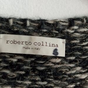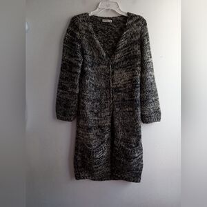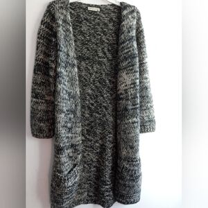 Roberto Collina Women Black/White Merino Wool & Baby Camel Knit Midi Cardigan size Large