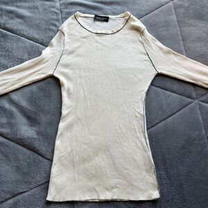 Roberto Collina Italy Ribbed Knit Cream Long Sleeve Top Size Small 100% Cotton