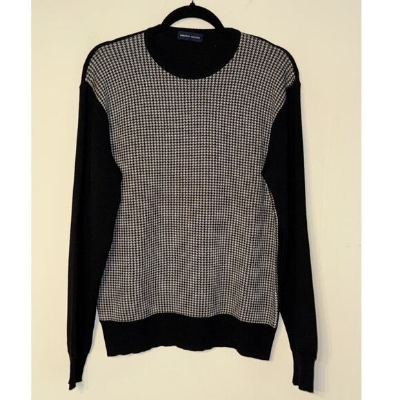 Roberto Collina Mens Long Sleeve Crewneck Black and White Houndstooth Sweater Quiet Luxury Old Money Dark Academia