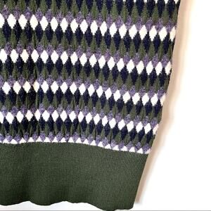 Roberto Collina Women's Dress Knit Geometric Pattern Wool Green Purple Ecru Black. Size Small. 3/4 sleeve. Excellent like new condition. Made in Italy.