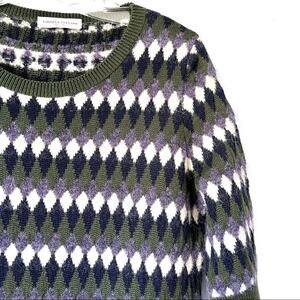 Roberto Collina green purple ecru wool jacquard sweater knit dress size Small