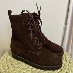 Tags: suede, quality, hidden wedge, lace up, combat, flat, fall, winter, quiet luxury, comfort, trendy, mid calf, crepe sole, leather