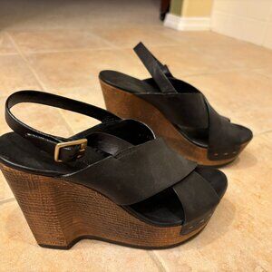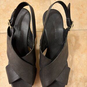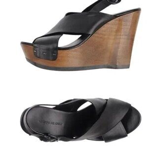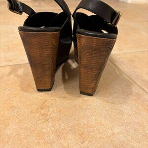 Beautiful Italian soft black leather sandals. Gorgeous wooden heels.