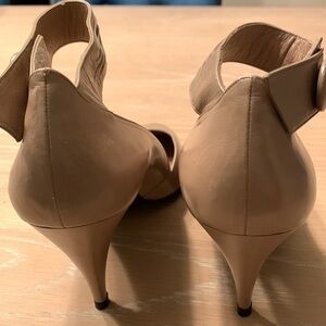 Roberto Nogueron “Fawn” tan heels with button ankle strap, 7.5 AA, NIB see**