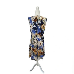 Roberto Verino Dress KNEE length sleeveless blue floral fully lined size 14