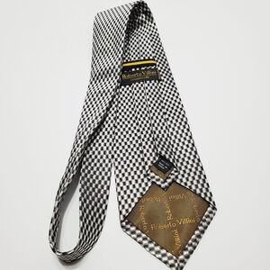 Roberto Villini Necktie Silver Check Silk Neck Tie Jacquard Fabric 57x3.75"