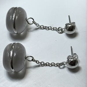 TAGS: Roberto by RFM earrings, gray dangle earrings, chain drop earrings, silver tone modern jewelry, minimalist resin earrings, designer capsule jewelry
