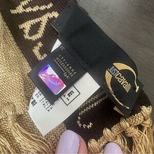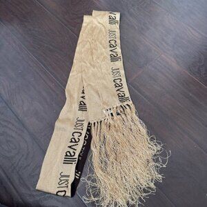 Roberto cavalli Just Cavalli gold and black wool Scarf with Fringe