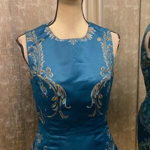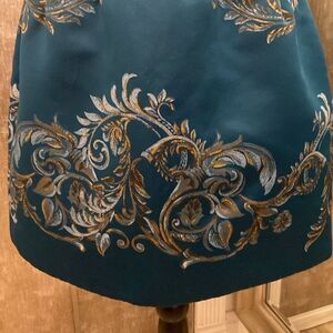 Roberto Cavalli Elegant teal and Gold Floral mini dress, US6
