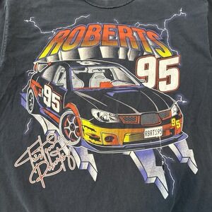 Roberts Racing T Shirt Men's XL Black Faded Distressed Graphic Lightning Racecar