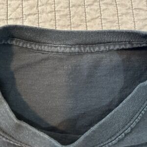 There is small hole and bleach staining on the graphic as well as overall fading. Shown in pics