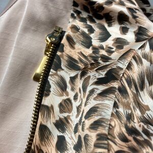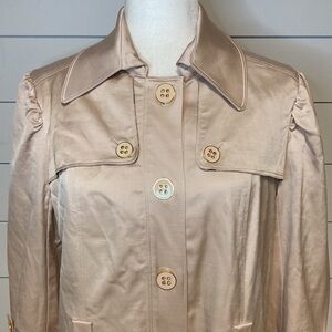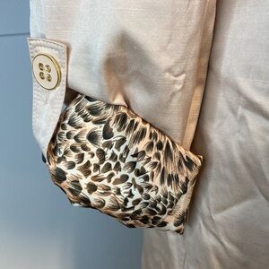 Size small Robertson Los Angeles trench coat. Blush beige w/abstract animal print trim and lining. Front pockets.