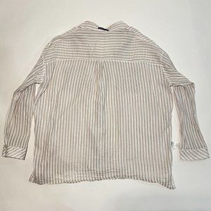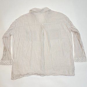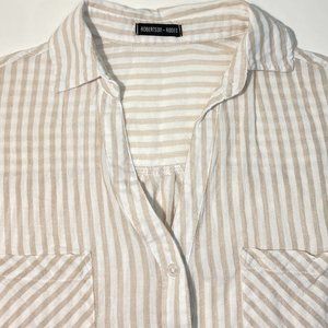 Robertson + Rodeo Oversized Striped Blouse Shirt Pockets White/Tan Women's Sz M